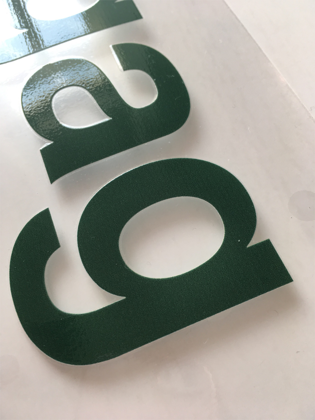 Ab einem Mindestformat von 5 cm x 5 cm ist die Größe der Aufkleber frei wählbar. Die Folienstärke beträgt 60 µm. Verschiedene Farben stehen zur Auswahl, bei der Oberfläche kann zwischen stark glänzend, metallic und matt gewählt werden. Einseitig beschichtetes Kraftpapier mit einem Gewicht von 137 g pro Quadratmeter dient als Abdeckpapier. Der verwendete Klebstoff ist permanent klebender, transparenter Acrylklebstoff, welcher auch langfristig ablösbar ist.