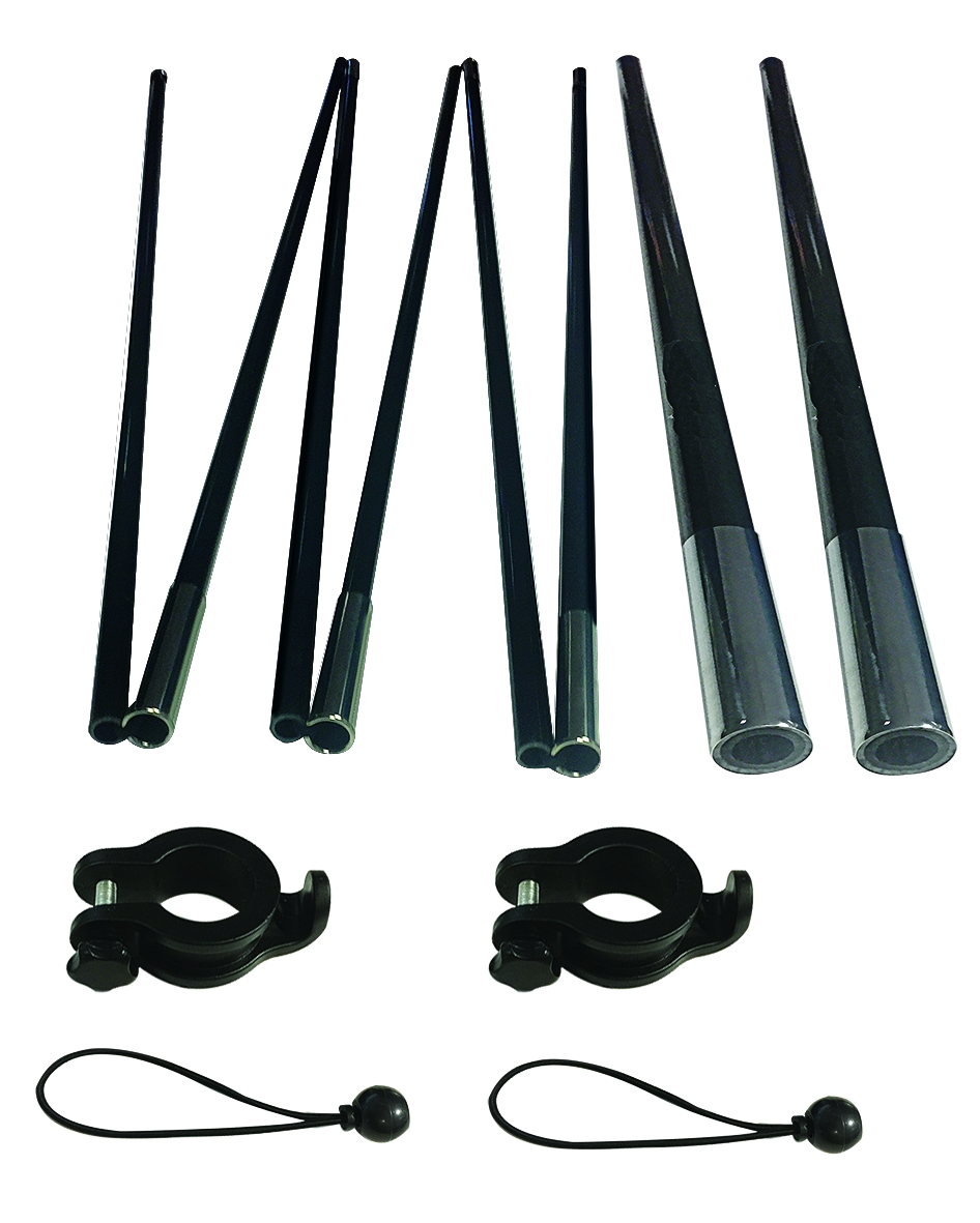 Fiberglas Stangen, Endkappen aus Chromstahl, Haken aus Kunststoff