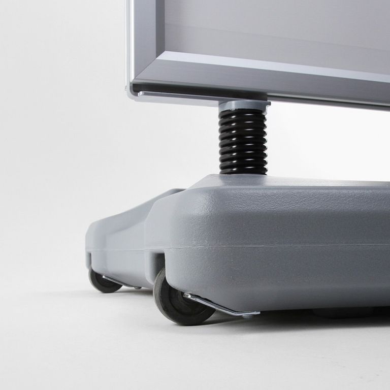 Speziell für Ihre Werbung in windigen Bereichen ist der Kundenstopper WINDTALKER® von Druckamt in Berlin die optimale Lösung. Sein mit Wasser oder Sand befüllbarer Standfuß bietet in Verbindung mit den Spezialfedern aus Stahl eine hohe Standfestigkeit. Für den einfachen Transport sind im Standfuß Rollen integriert. So können Sie den Kundenstopper trotz des Standgewichtes einfach bewegen. Der Aluminium-Schnellwechselrahmen kann doppelseitig mit Plakaten bestückt werden und garantiert Ihnen auch bei hohen Windstärken eine auffällige Werbemöglichkeit.