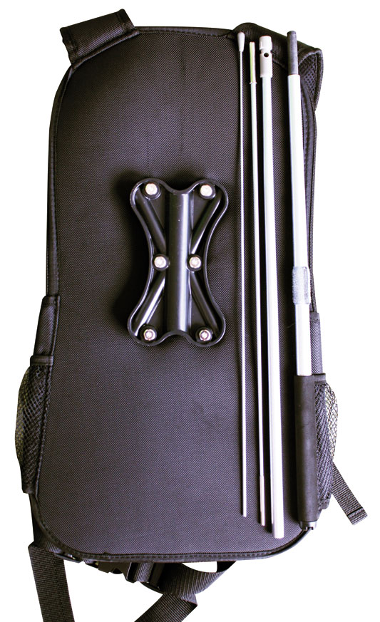 Als Tragegestell für die Fahne dient der Rucksack aus beschichtetem Nylon. Dieser sitzt dank komfortabler Polsterung bequem und kann durch einen verstellbaren Gürtel individuell angepasst werden. Zudem verfügt er über verstärkte Gurte sowie ein robustes und gleichzeitig leichtes Fahnenbefestigungssystem, so wird gewährleistet, dass die Fahne sicher und stabil hält. Neben der Fahne können Sie auch andere Dinge in dem Rucksack transportieren, denn er verfügt über ein Reißverschlussfach und seitliche Netztaschen. In einer praktischen Zusatztasche auf der Tragegurtseite können die Gestänge aufbewahrt werden.