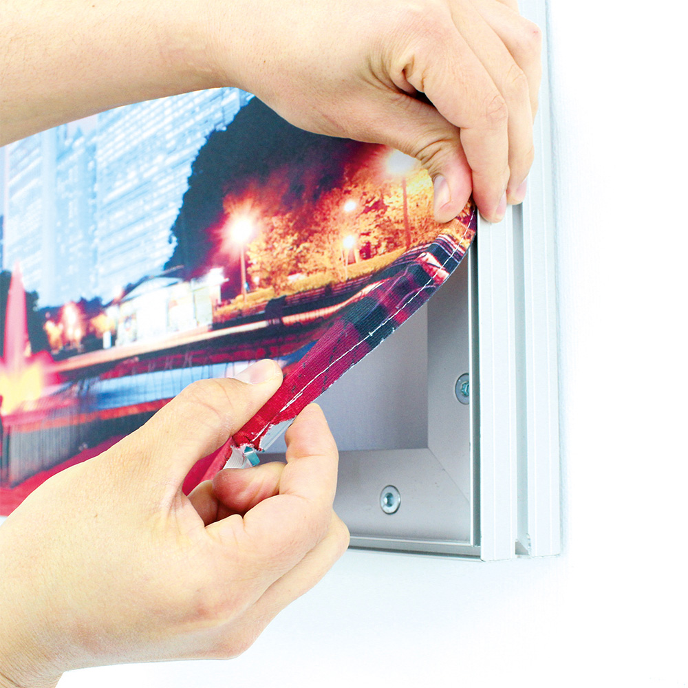 Textilspannrahmen Stele freistehend von Druckamt in Berlin, die sich ideal zur Präsentation im Point-of-Sale, auf Messen oder Events eignen.