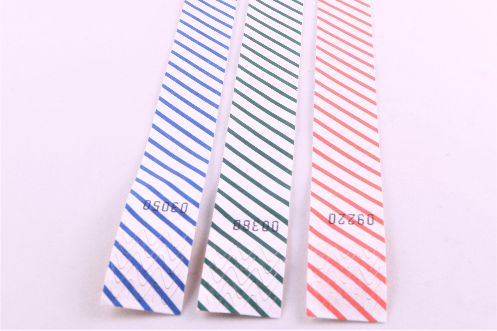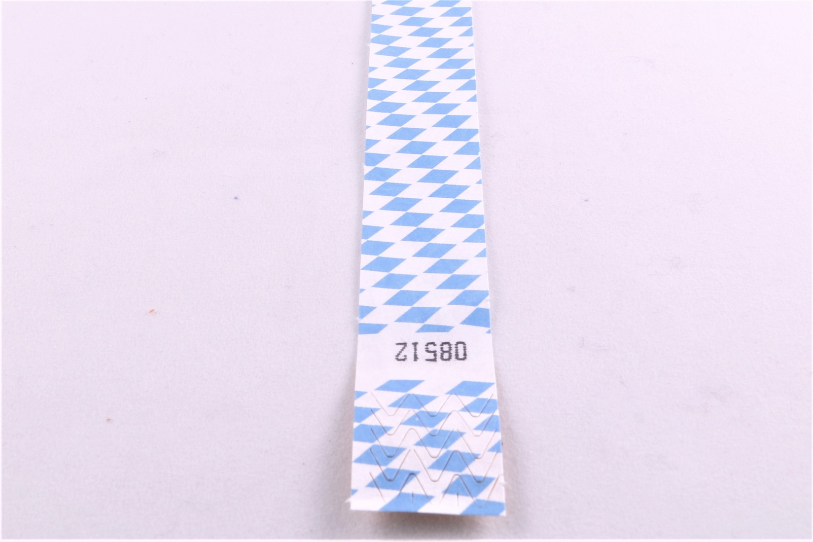 Die praktischen Einlassbänder aus papierähnlichem und reißfestem Tyvek mit vorgefertigten Motiven von Druckamt in Berlin werden mit einem Klebestreifen verschlossen. Beim Öffnen des Klebestreifens wird die Perforation am Band zerstört. Somit sind unsere Tyvek-Bänder genau so sicher wie Einlassbänder mit Plastik-Verschluss und nicht übertragbar.