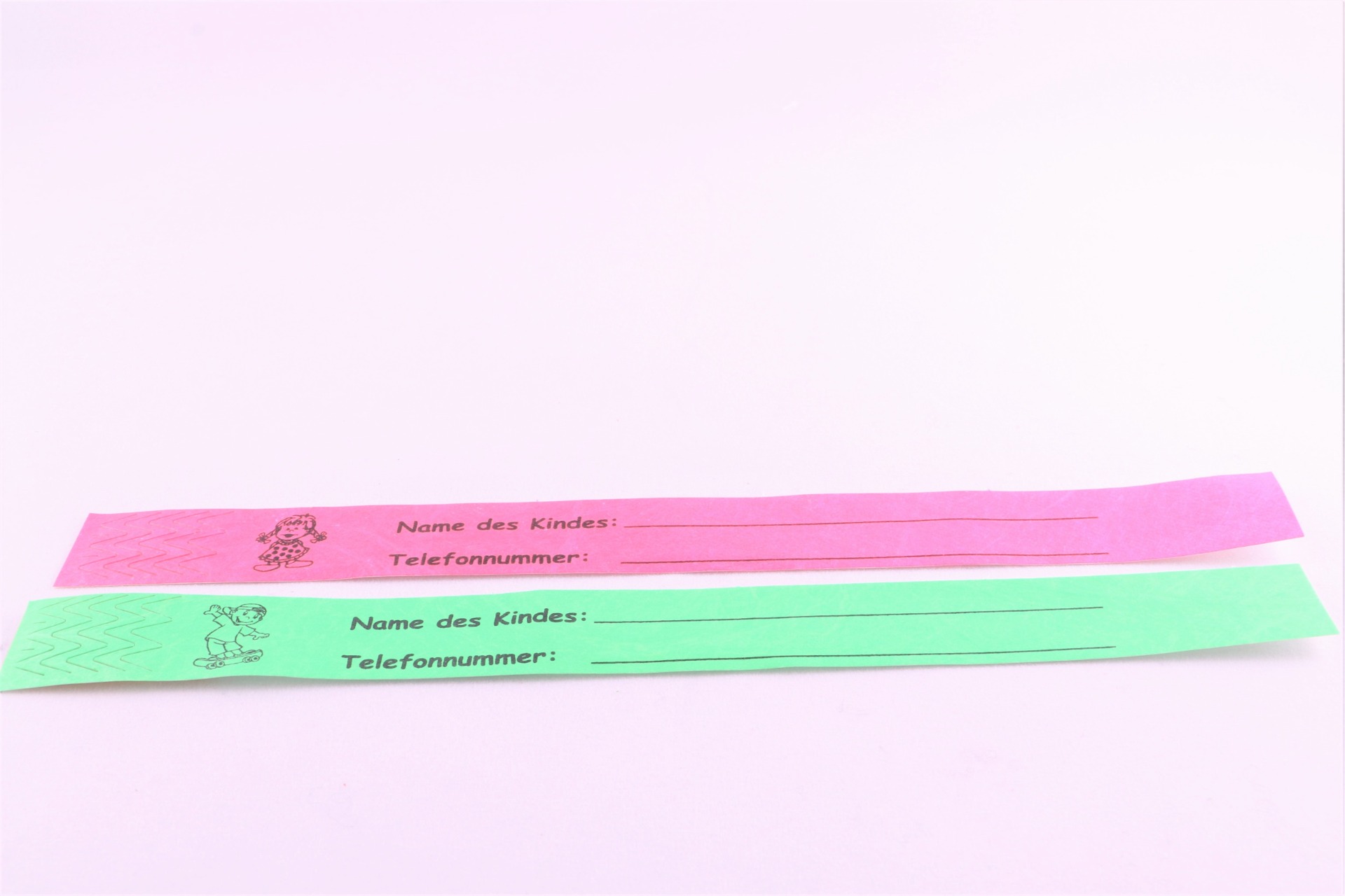 Sie haben die Auswahl aus 8 Motiven, darunter Kinderbänder für die Anwendung bei großen Menschenmassen und Bänder zur Kennzeichnung 16- und 18 jähriger zur sicherstellung des korrekten Alkoholausschanks.
